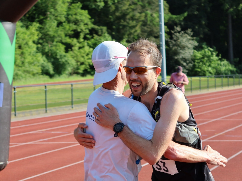 Vlak achter de groep trimmers begon de man luid te roepen en te bellen naar de groep trimmers. Ze moesten aan de kant en hij stoof er tussendoor. De man werd heel enthousiast en begon steeds harder te fietsen. Mijn hartslag en tempo stegen ook mee, want ik was uit focus en gericht om het achterwiel te houden. Een beetje verontschuldigend ging ik achter de man slalommend door de groep trimmers heen. Luid juichend ronde de man mijn 2e 3km af. Als een echte supporter, was hij vooral blij met mijn prestatie. We gaven elkaar een high five en hij ging verder op de fiets. Misschien ook trots op de hulp die hij vandaag aan iemand heeft kunnen bieden. De trimmers kwamen daarna boos voorbij.