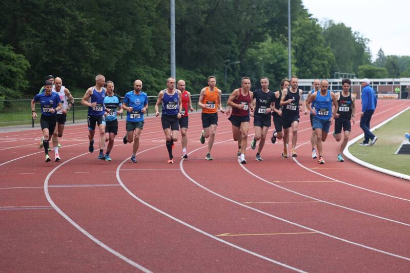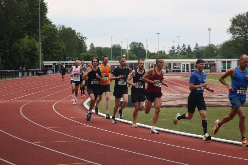 Een mooi startveld met met 17 lopers stonden met hun vingers bij de horloges om te starten aan deze baanwedstrijd.